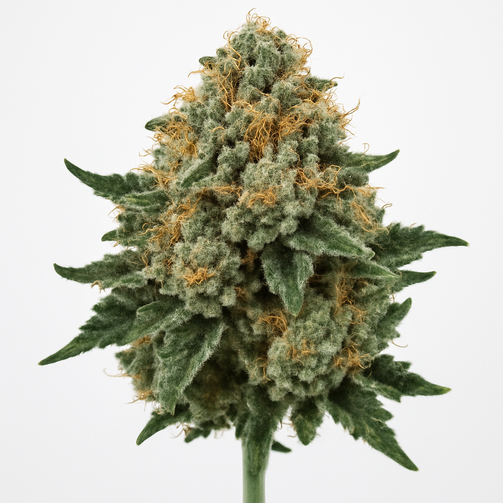 A substantial layer of trichomes is one of the strain’s most consistent visual markers, often producing a sugar-dusted finish on both the calyxes and the surrounding sugar leaves. Phenotypes can differ in how bulbous or elongated the colas become, but the overall impression is dense, sticky, and built for bulk rather than decorative looseness.