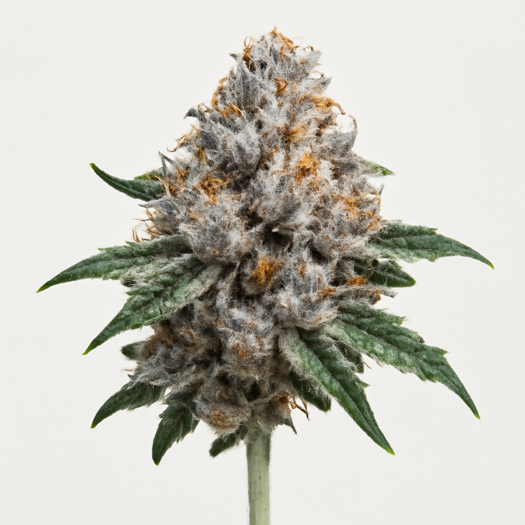 Coloration often trends toward medium green, though some phenotypes show faint purple or lavender undertones under cooler late-flower temperatures. Orange pistils are usually present in moderate quantity, but the resin blanket tends to dominate the visual profile more than the hair coverage. Variation between cuts is real, which is one reason the strain is often discussed as a specific clone rather than a generic seed-grown label.