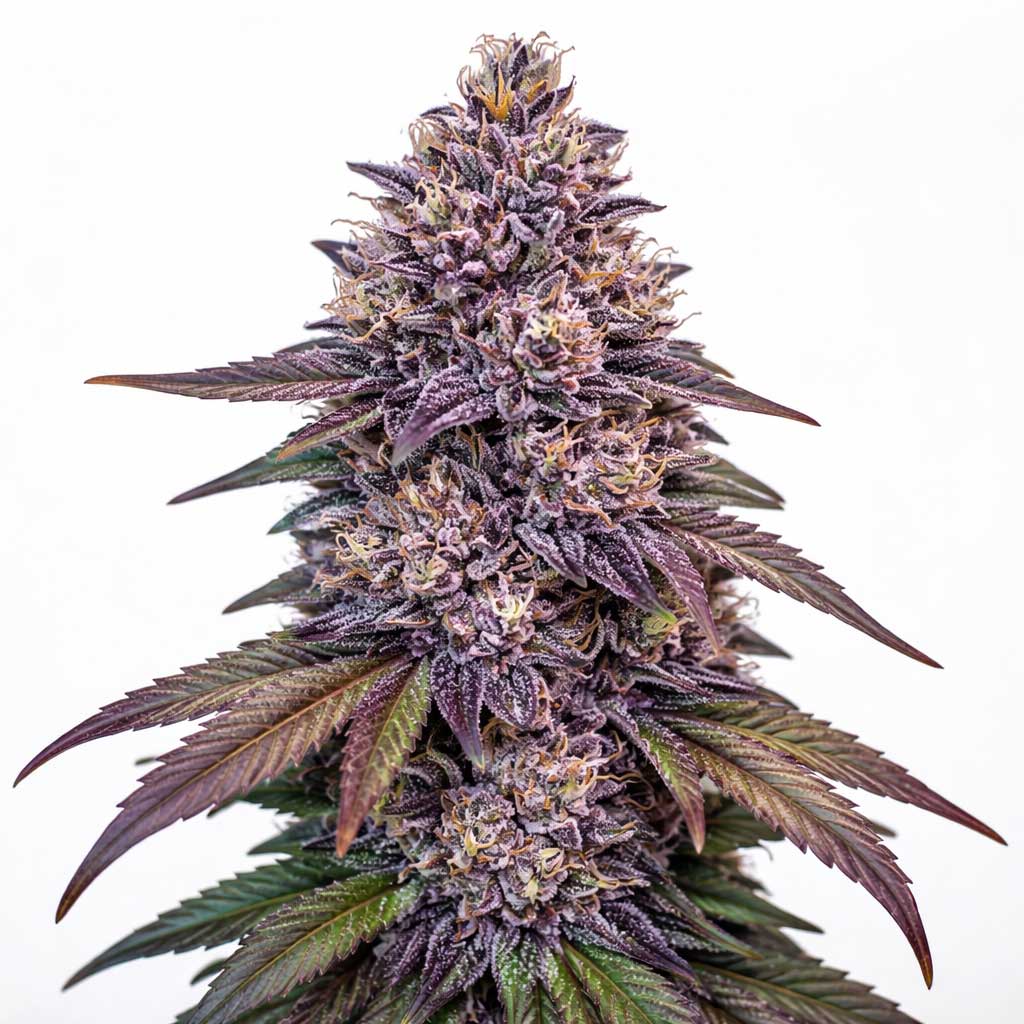 The flowers are usually dark green and heavily frosted, with some phenotypes showing purple or near-black hues under cooler night temperatures. Resin production is one of the cultivar’s defining features, often producing greasy, sticky trichomes with strong surface coverage across the calyxes and sugar leaves.